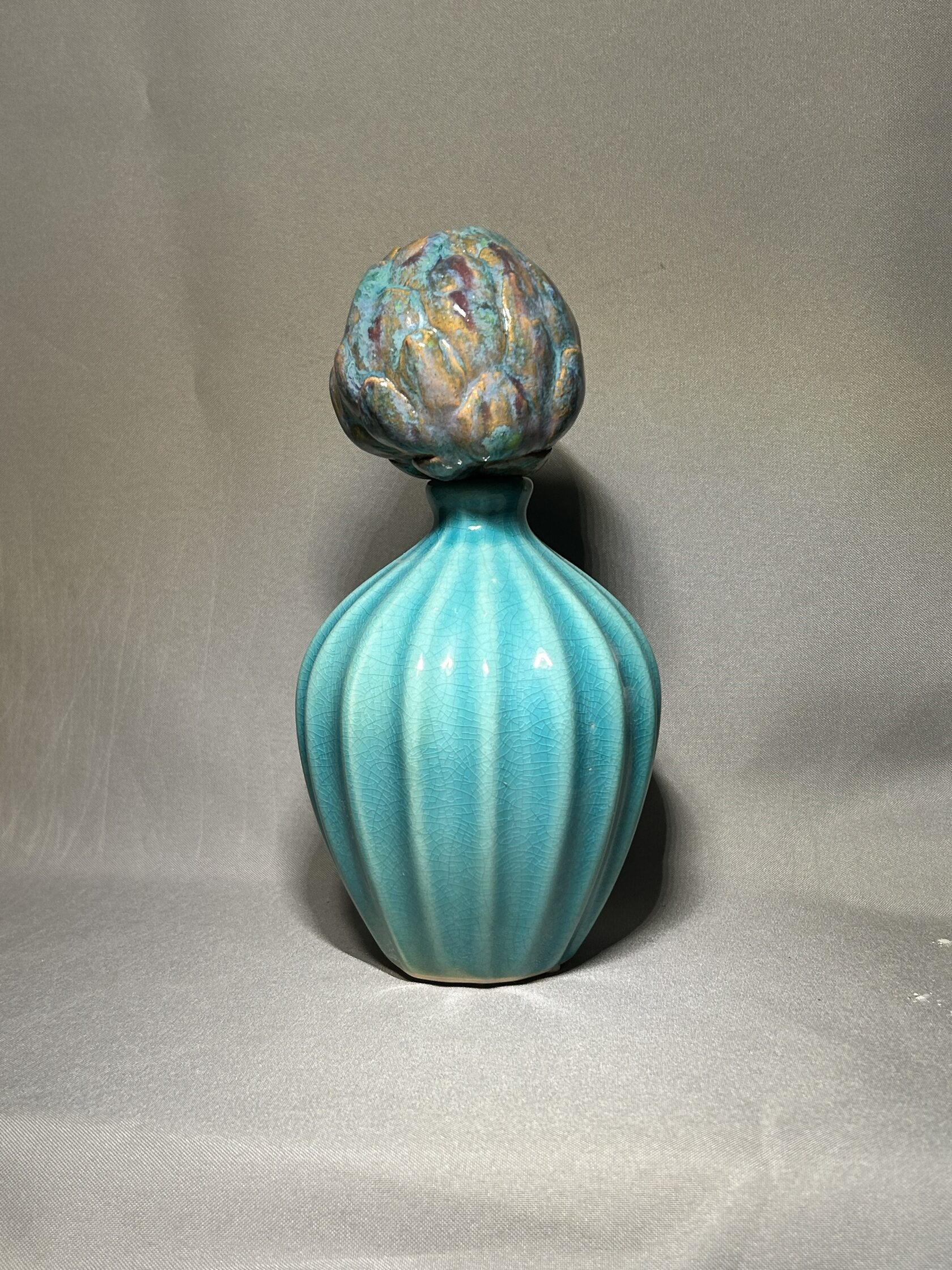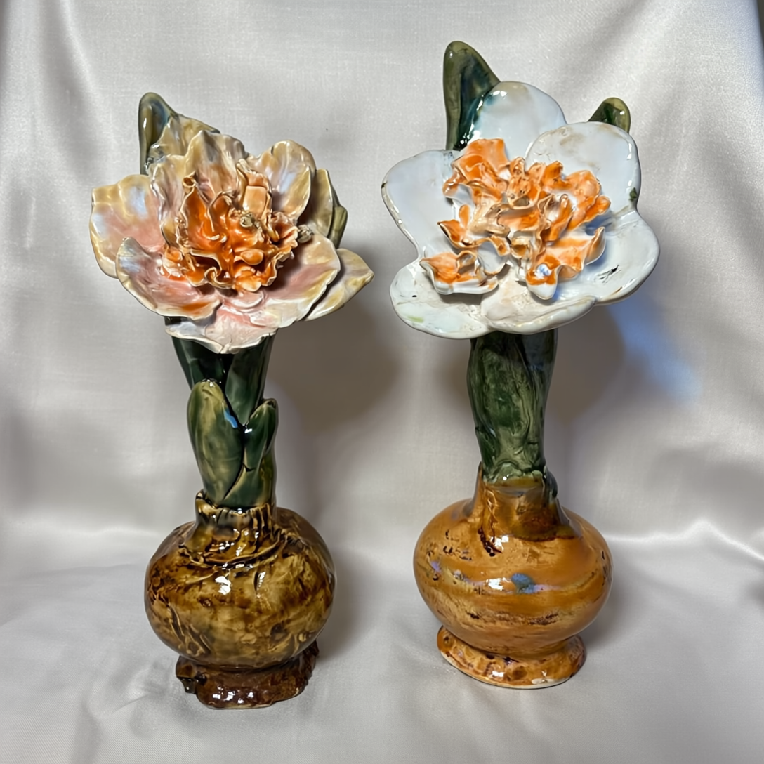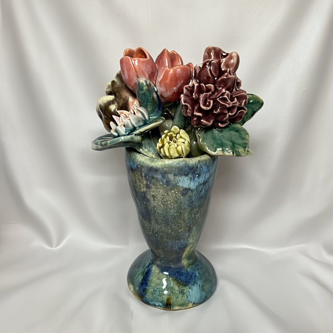 Гармоничный дуэт лилий и хризантем в этой керамической композиции рассказывает историю о чистоте и мудрости. Благородные лилии символизируют духовную чистоту, а пышные хризантемы — долголетие и жизненную энергию. Игра объемов и изгибов создает динамичную композицию, где каждый цветок занимает свое идеальное место. Ручная роспись тонко передает естественные оттенки лепестков, делая этот букет вечным напоминанием о гармонии природы.