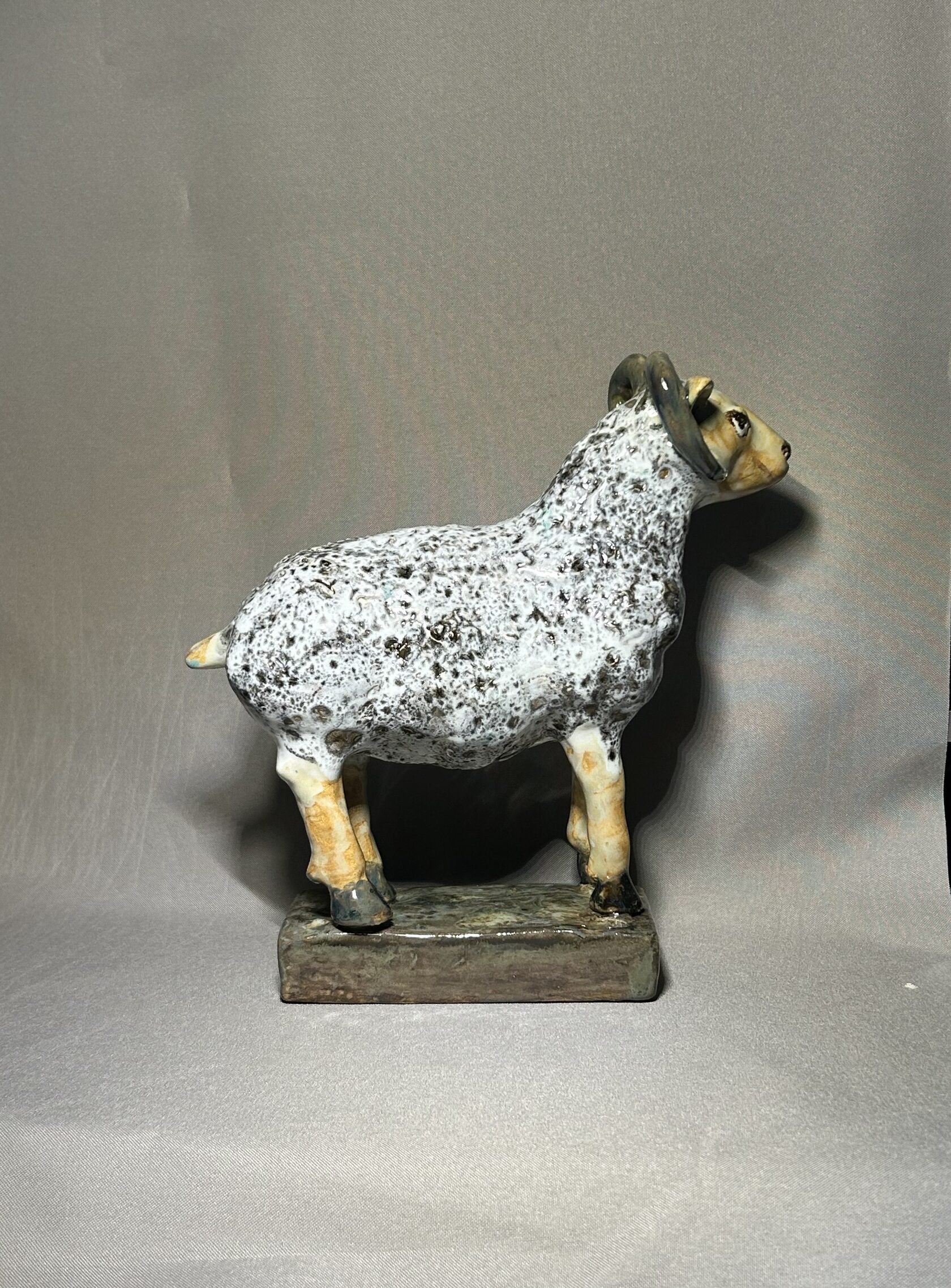 Очаровательный керамический барашек с аккуратными кудряшками на устойчивой подставке. Нежный взгляд и умилительная поза делают эту скульптуру идеальным украшением спальни, гостиной или детской. Авторская работа, выполненная с особой теплотой и вниманием к деталям.