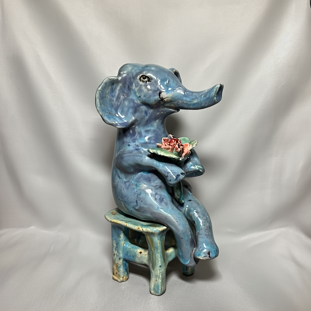 Умилительный керамический слоник устроился на стульчике, как настоящий джентльмен, и бережно держит в хоботе крошечный букетик цветов. В этой трогательной композиции сочетается мощь доброго великана и хрупкая красота природы. Идеальный подарок, чтобы напомнить о самых важных вещах: нежности, заботе и умении видеть красоту в мелочах.