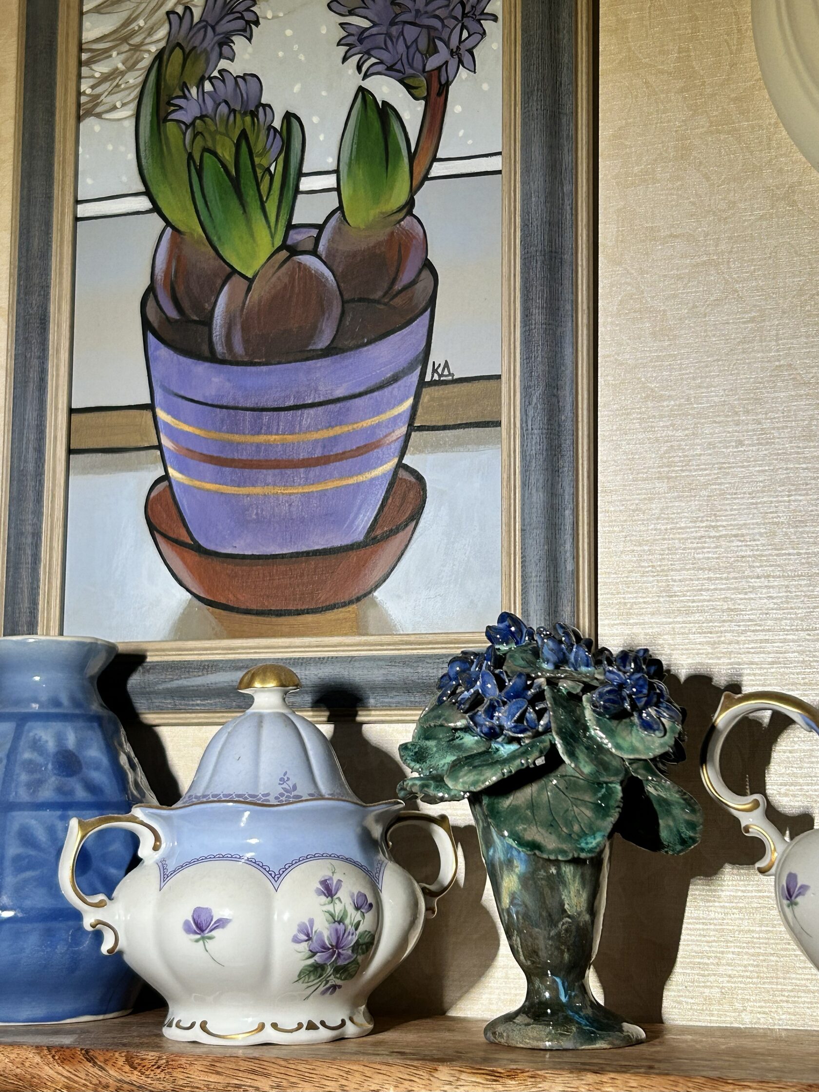 Роскошный подарок для тех, кто ценит вечную красоту! Керамический кувшин с изящными пропорциями и ручной росписью стал основой для изысканного букета. Объемные розы, пионы и незабудки создают богатую фактуру и игру света, а продуманная композиция выглядит как живой букет. Это идеальное решение для тех, кто хочет сохранить атмосферу праздника в интерьере навсегда. Идеи для подарка:
