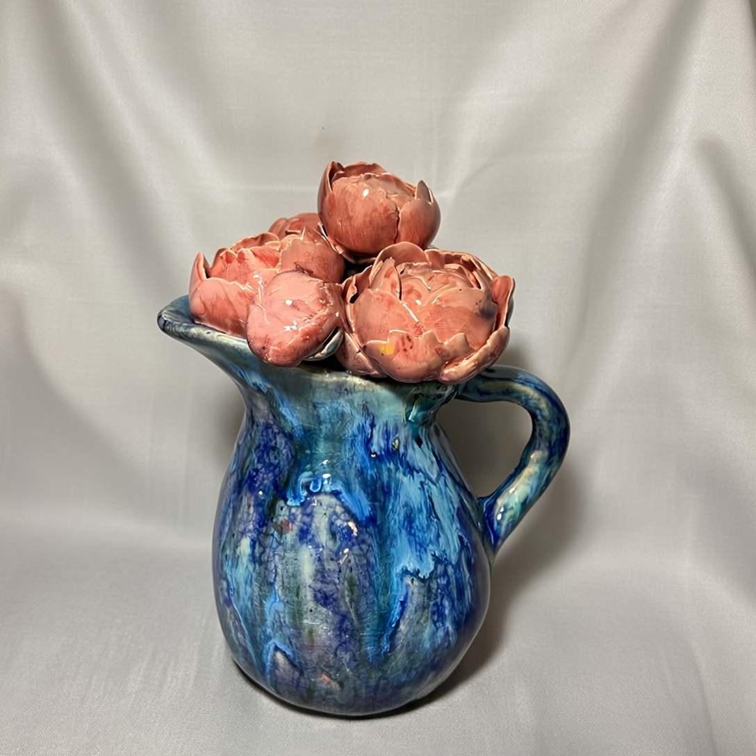 Пионы — символ любви, богатства и благополучия, и эта керамическая композиция станет вашим персональным талисманом! Пышные соцветия с тщательно проработанными лепестками и изящный кувшин образуют гармоничный дуэт, несущий в себе энергию расцвета и изобилия. Ручная роспись подчеркивает естественную красоту цветов, а сдержанная цветовая гамма делает композицию универсальным украшением для классического и современного интерьера.