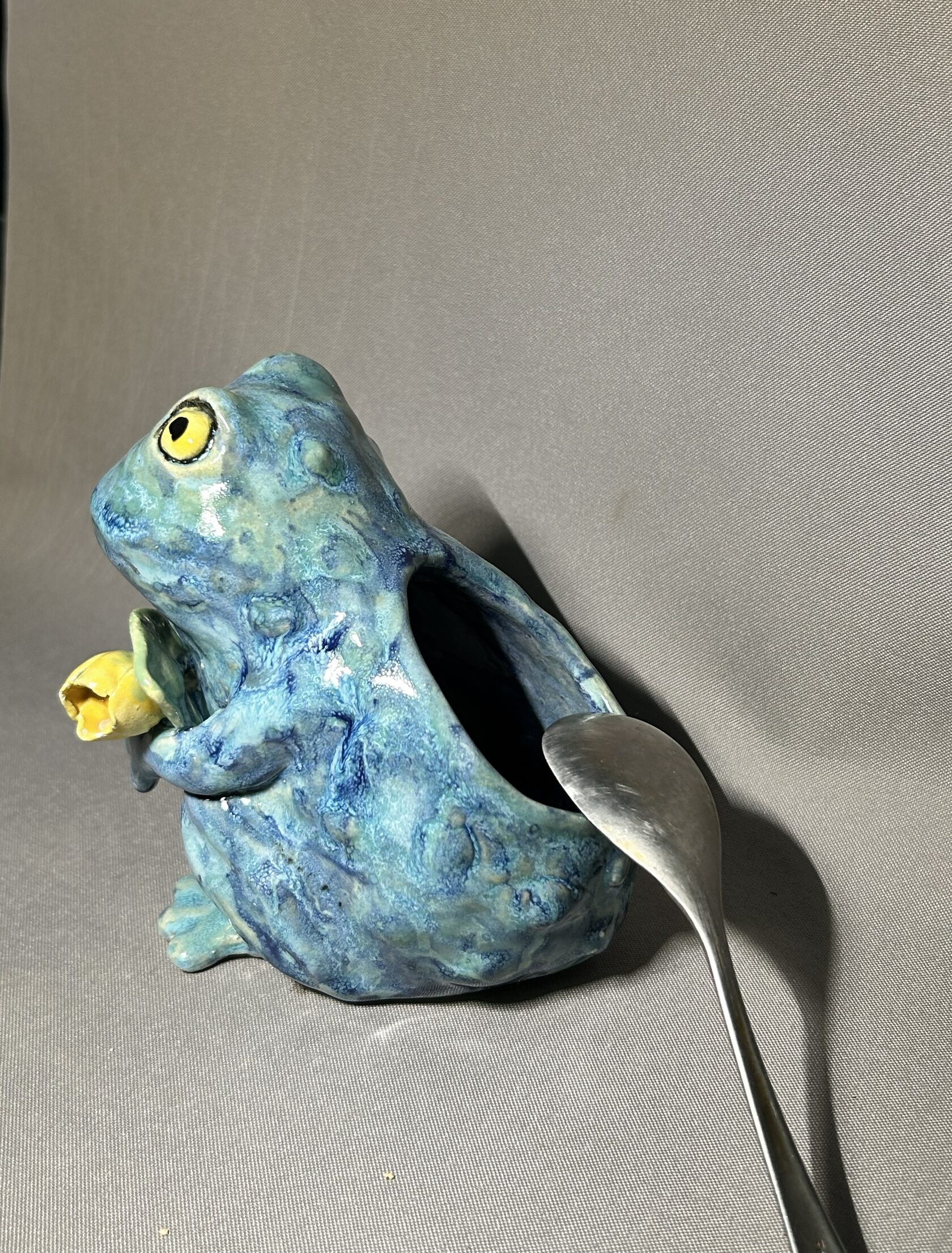 Этот керамический лягушонок словно принес вам первый весенний привет! Затаив дыхание, он бережно держит в лапках нежный алый тюльпан, словно предлагая вам этот хрупкий подарок. Трогательный взгляд и поза полны надежды и нежности. Каждая деталь, от текстуры кожи до изгибов лепестков, создана вручную, наполняя фигурку теплом и душой. Этот дуэт станет символом пробуждения природы и маленьких радостей в вашем доме.