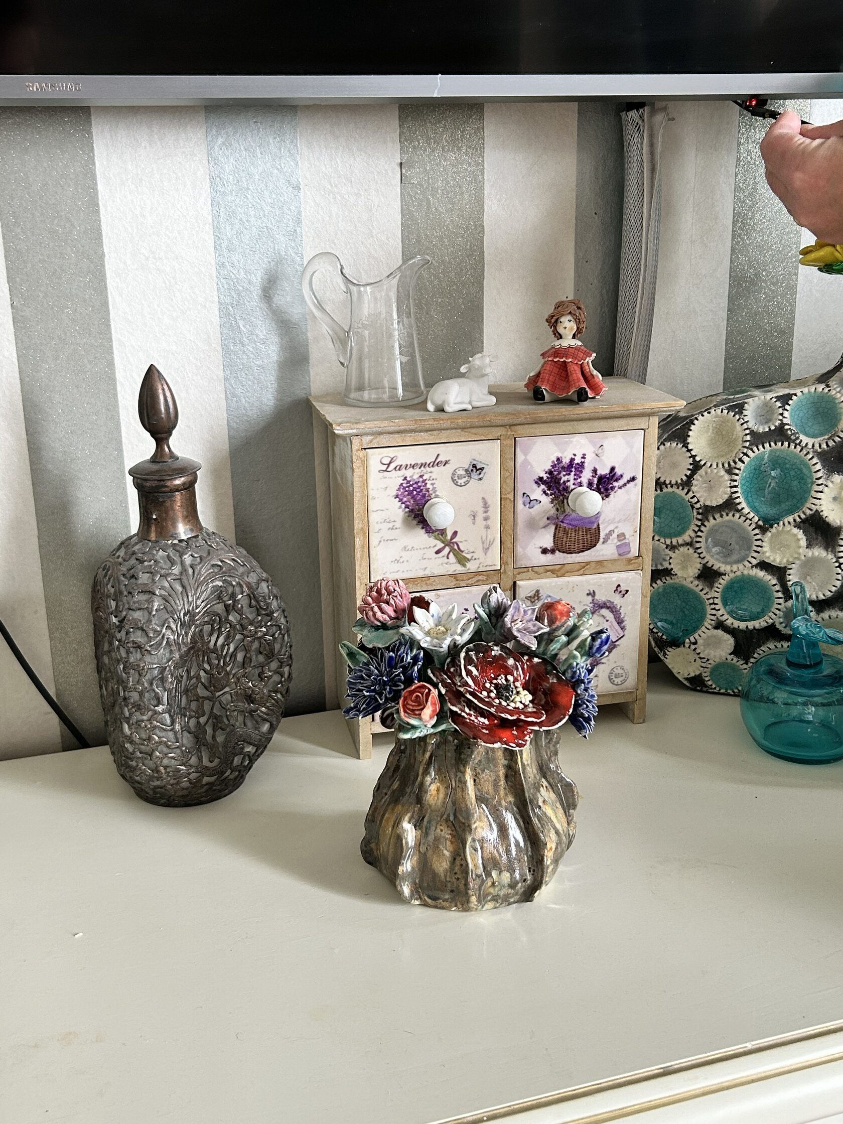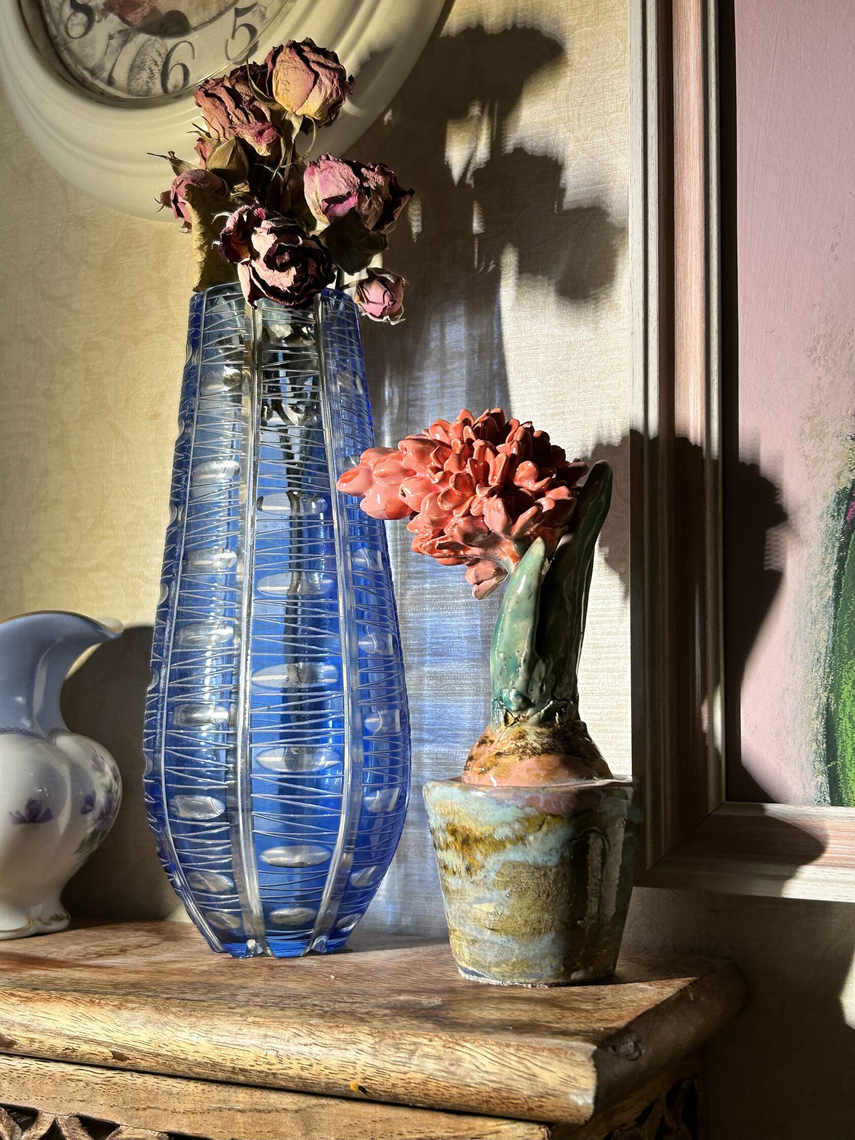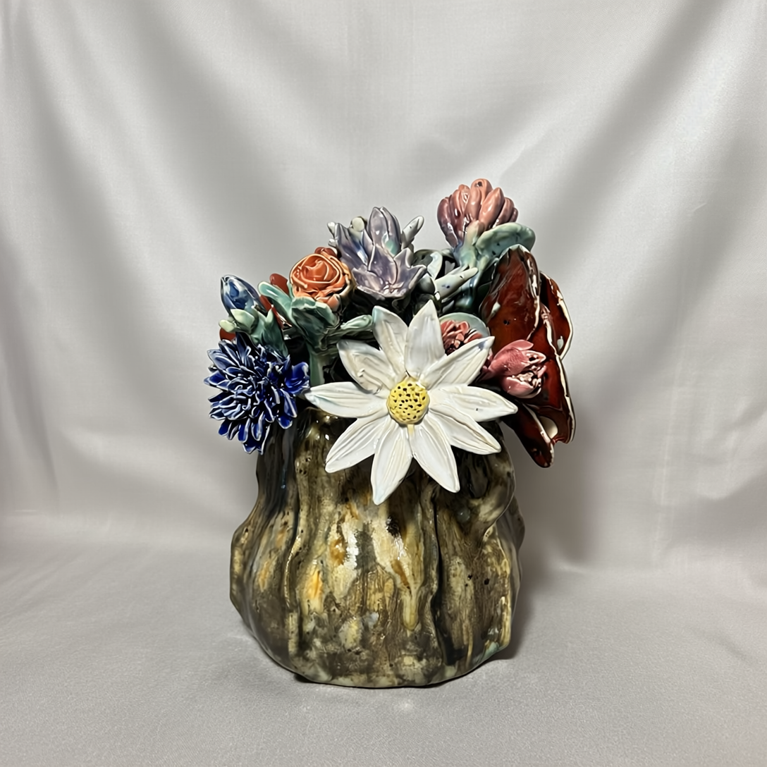 Эта вазочка хранит в себе летнее настроение круглый год! Каждый цветок обладает своим характером и рельефом, создавая удивительно живую композицию. Идеально смотрится как самостоятельный декор, даря пространству тепло и уют ручной работы.