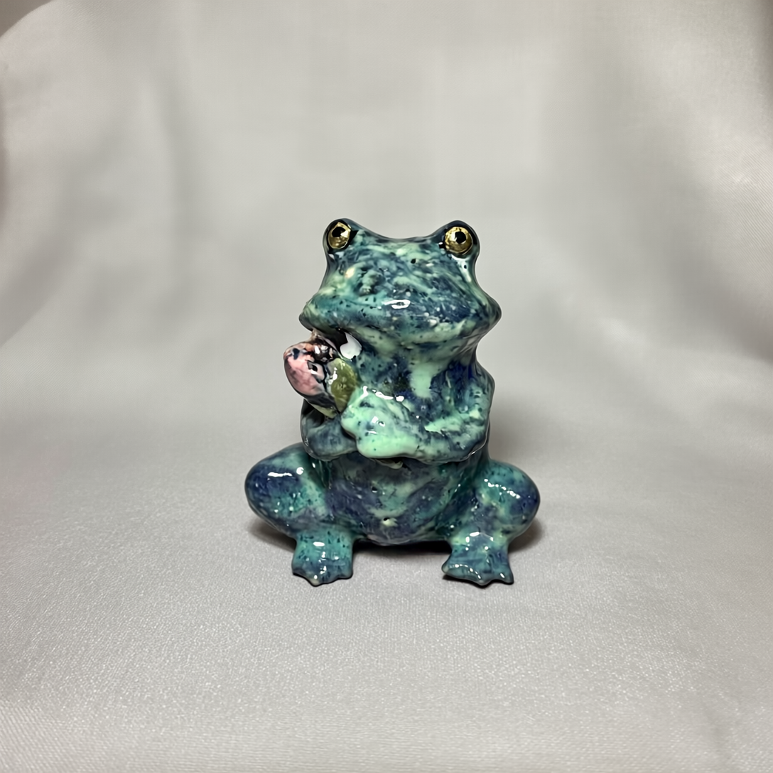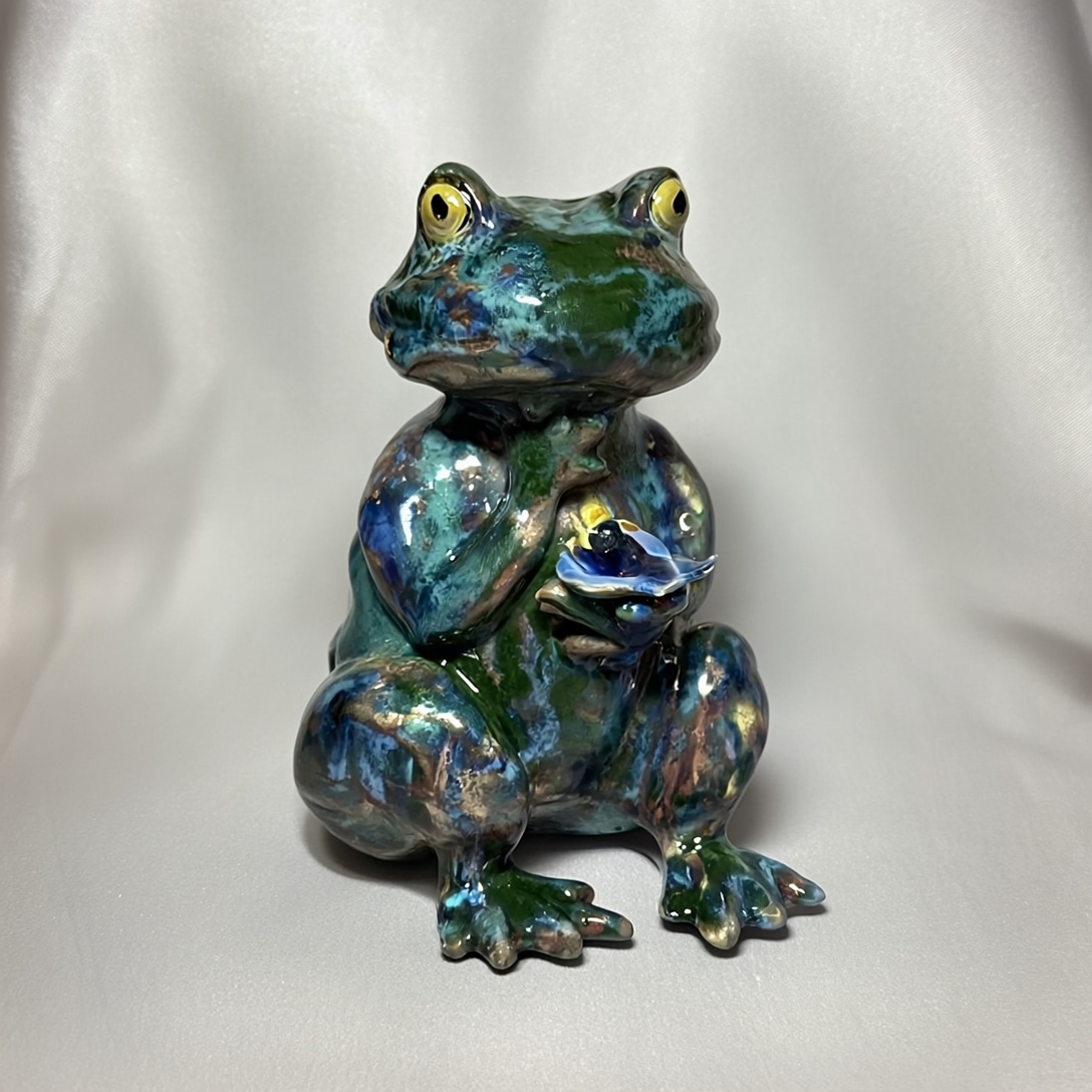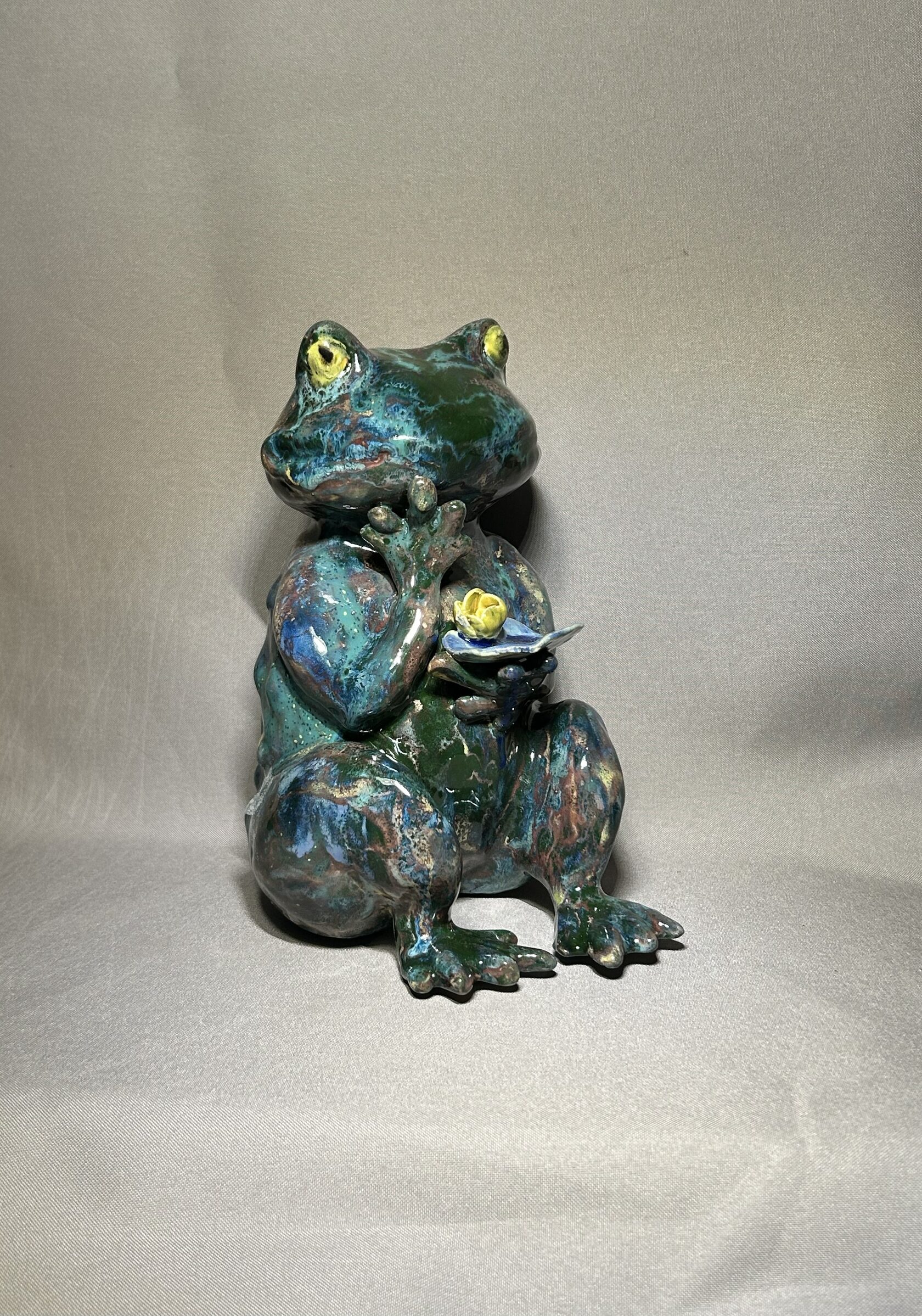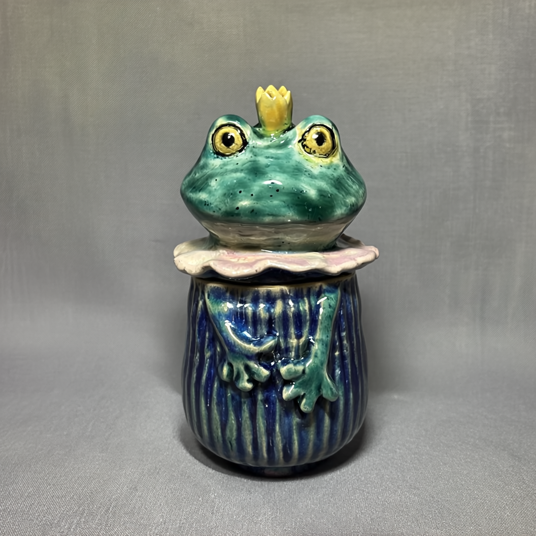 Эта керамическая жаба — не просто фигурка, а мощный талисман, пришедший из древних легенд. В славянской традиции жаба, держащая в лапках цветок, символизирует защиту домашнего очага и привлечение богатства. Наша мастерица воплотила этот образ с особым изяществом: жаба бережно сжимает не кубышку, а изящную кувшинку, что добавляет композиции легкости и природной гармонии. Пусть эта хранительница благополучия поселится в вашем доме, принося удачу и украшая интерьер своей мудрой красотой.