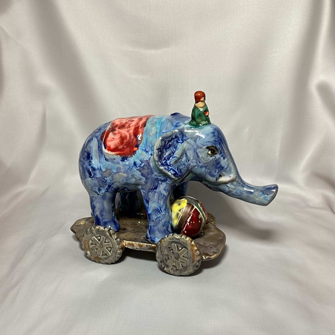 Цирковое детство, застывшее в керамике! Этот очаровательный слонёнок весело катится на своей платформе, ловко балансируя на ярком мяче. Он словно сошёл со страниц старой доброй книги и готов нести в ваш дом радость, волшебство и лёгкость бытия. Уникальная ручная работа, которая станет сердцем вашего интерьера и самой душевной историей на полке.