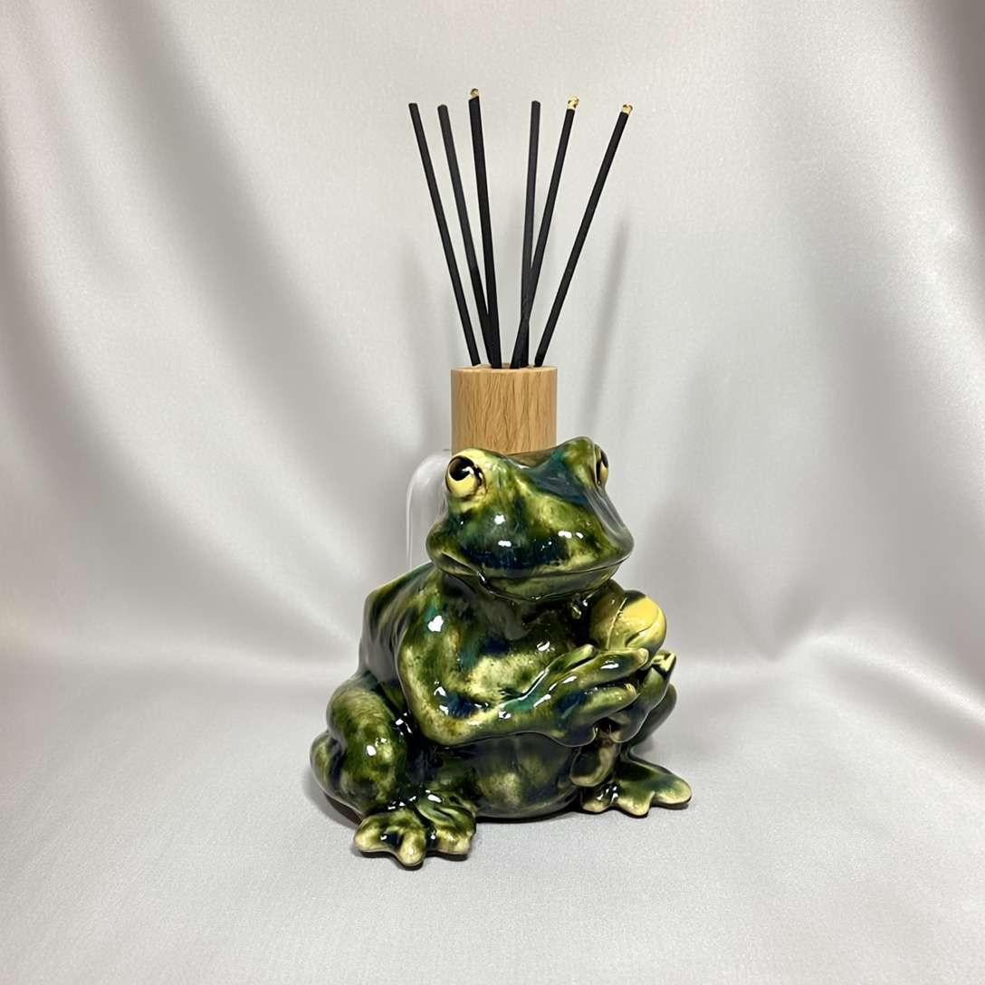 Эта керамическая жаба — не просто талисман богатства, но и элегантный функциональный аксессуар для вашего дома. Мудрая хранительница держит в лапках символ чистоты — кувшинку, а на ее спине есть специальная выемка, куда можно поместить ароматические палочки или зубочистки. Таким образом, ваш талисман будет не только привлекать благополучие по древним поверьям, но и наполнять пространство тонким ароматом или хранить полезные мелочи. Уникальная ручная работа, которая сочетает в себе магию, искусство и бытовой уют.