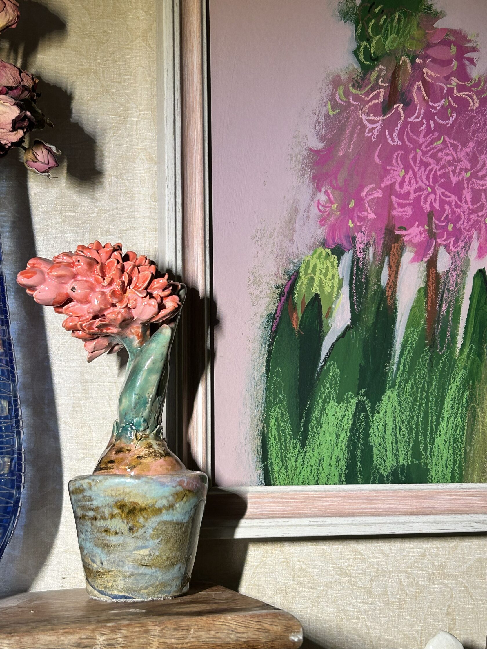 Этот очаровательный розовый гиацинт в керамическом кашпо станет вашим личным источником весеннего настроения! Нежные соцветия-свечи, хрупкие бутоны и сочные листья вылеплены с ботанической точностью, создавая полную иллюзию живого цветка. Композиция в лаконичном кашпо ручной работы — идеальное решение для самых солнечных мест в доме: подоконника, журнального столика или прикроватной тумбочки. Наслаждайтесь изящной красотой без полива, пересадки и капризов настоящего растения!