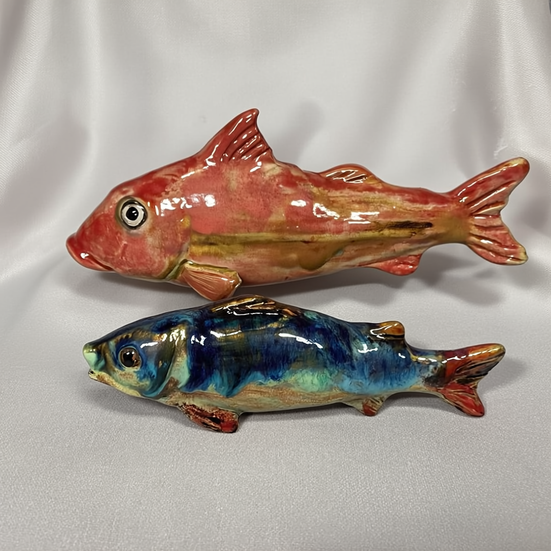 Объемный керамический окунь — это детализированная скульптура, которая оживит любую полку или комод. Ручная лепка и роспись глазурями создают эффект живой рыбы, только что выловленной из воды. Идеально подходит для оформления интерьера в морском или эко-стиле, а также станет необычным подарком для рыбаков и ценителей природы.